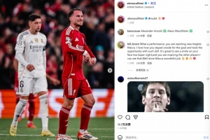 麦卡在进球后比出“A”字母庆祝的动作,也被很多人视为对阿诺德的“贴脸开大”,因为这和阿诺德的庆祝几乎一模一样。