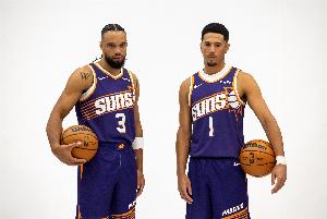 此役,布克首发出战了36分36秒,16投10中,三分5中2、罚球9中9,空砍31分3篮板7助攻;狄龙打了31分钟18投6中,三分13中3拿到15分3篮板2助攻4抢断1盖帽。